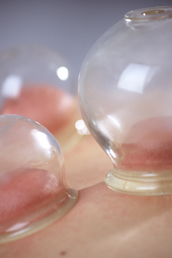 Schröpfkopfmassage - löst „verklebte“ Muskulatur, wirkt durchblutungsfördernd und entschlackend.