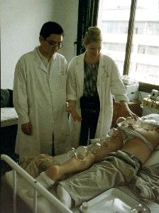Endlich in Lu Zhou angekommen ging es auch schon los. Fr. Dr. Hu und Dr. Lin machten eine Führung und zeigten mir die Klinik und das Universitätsgelände. Anschließend diskutierten wir 2 Krankheitsfälle an stationären Patienten. Dies erfolgte anhand der Anamnese, Aussehen und Geruch des Patienten, der Sicht der Zunge und des Fühlen des Pulses. Nach Besprechung des Krankheitsmusters wurde die Punktekombination festgelegt, die Punkte besprochen und schließlich gestochen. Das war der erste und letzte Tag an dem ich nur zusah. Ab sofort hieß es: “Now, it`s your turn!“ was soviel bedeutet wie: “Jetzt bist du dran.“